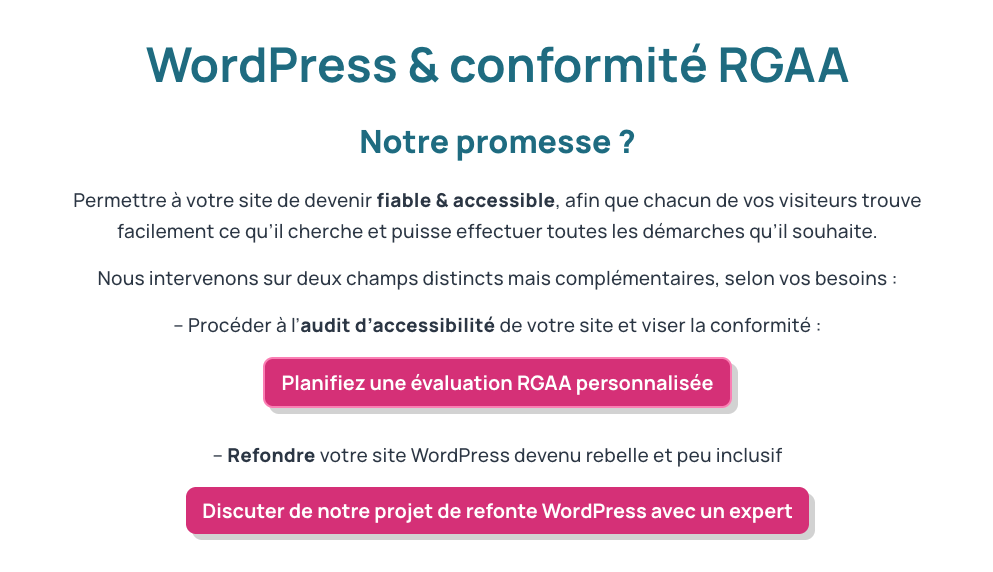 Si vous me découvrez, je suis CEO d’une agence experte en refonte de sites fiables & accessibles + juriste consultante en accessibilité web.